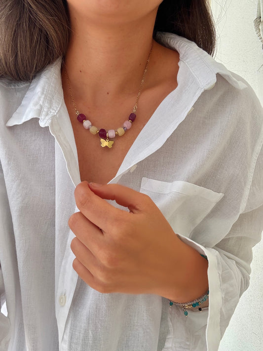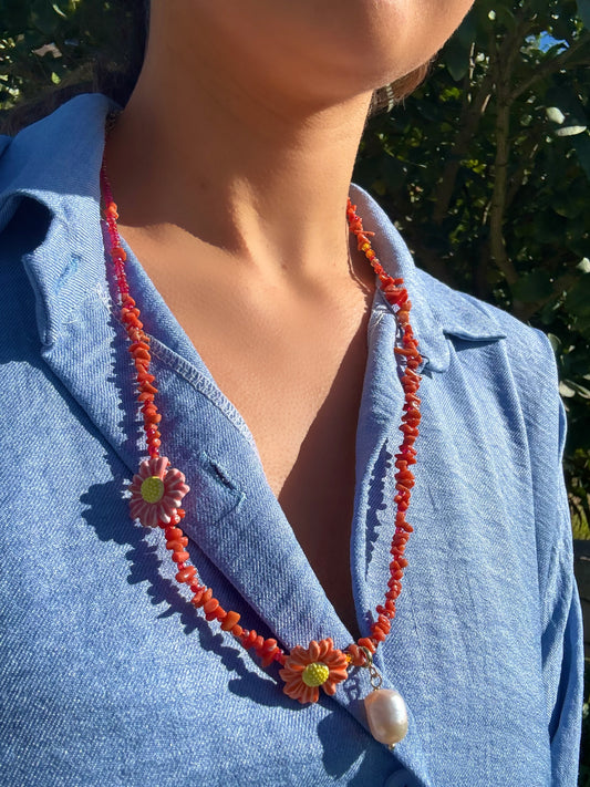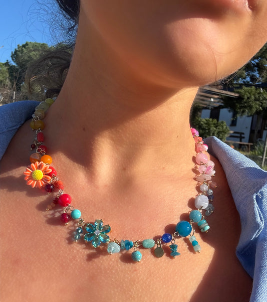 Collana Fiore Arcobaleno con pietre e ciondoli