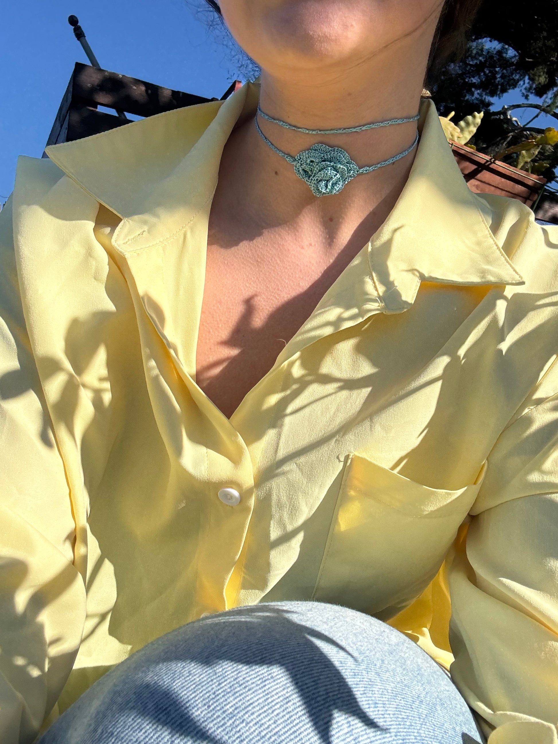Interamente realizzato a mano ad uncinetto con filo di seta luminosissimo.